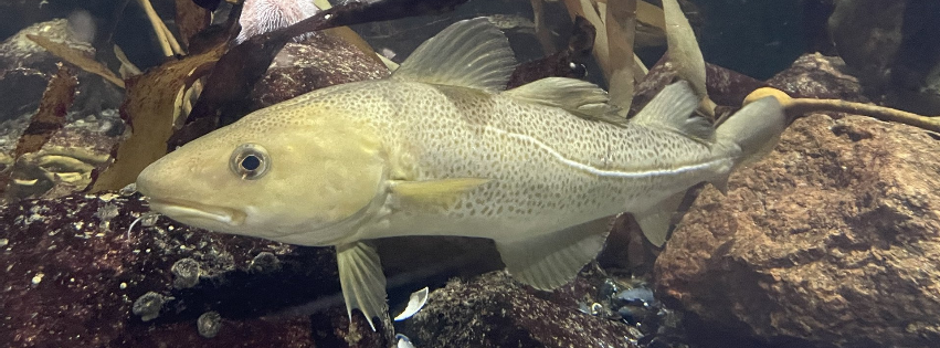 Die Nordseebecken des Aquarium GEOMAR zeigen vor allem fischereiwirtschaftliche Fische, aber auch weitere Fischarten und Wirbellose werden berücksichtigt. So durchschwimmen unter anderem auch einige Vertreter der Familie der Dorsche, wie Kabeljau und Pollack, das tiefe Nordseebecken. Die Vertreter dieser beiden Fischarten findet man in der Größe, wie im Aquarium GEOMAR gezeigt, in der freien See nahezu gar nicht mehr, da ihre Bestände durch Überfischung stark zurückgegangen sind.